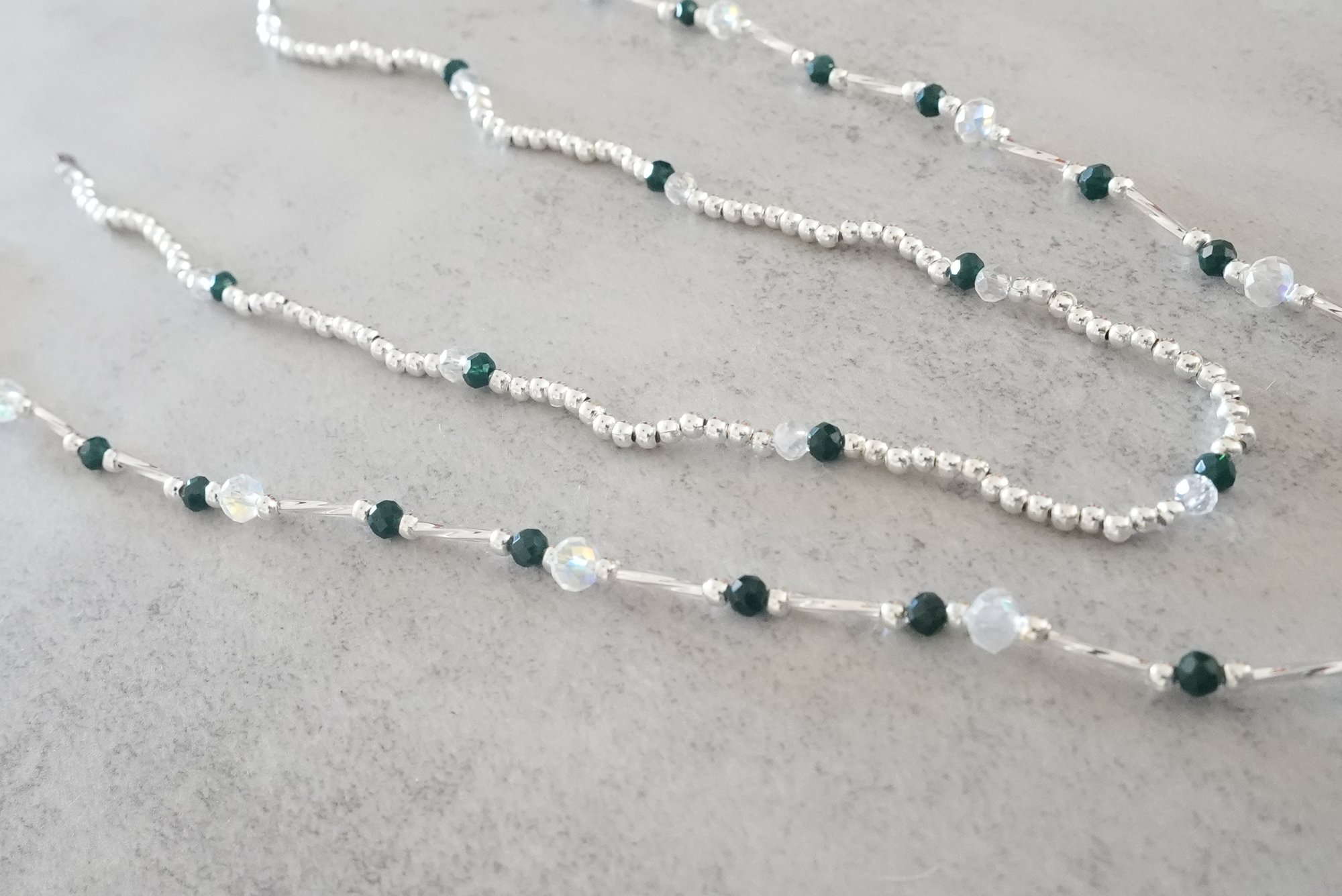 Made with acrylic beads and a stainless steel charm and hardware