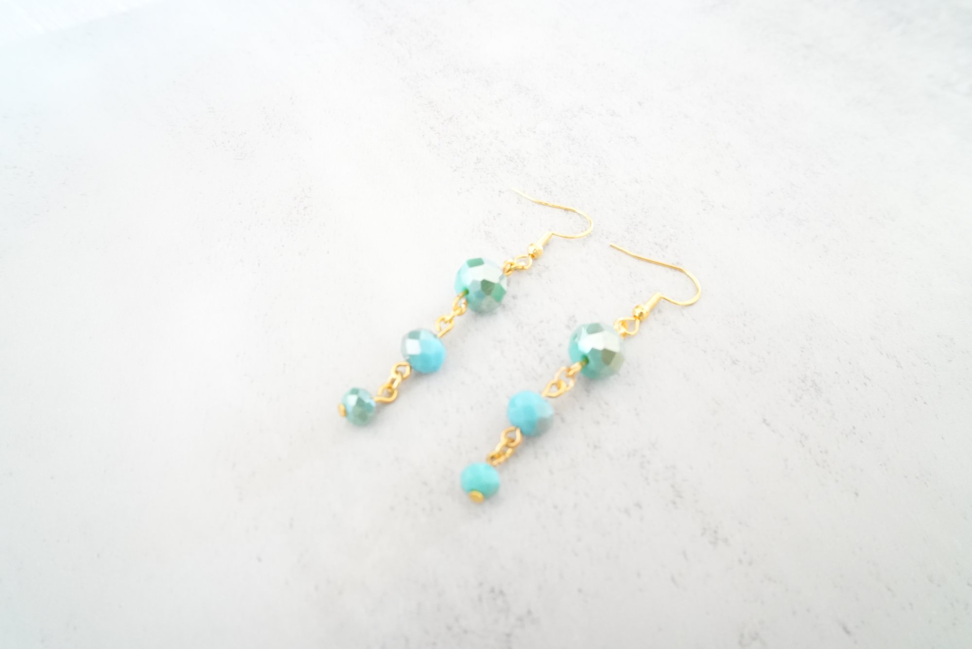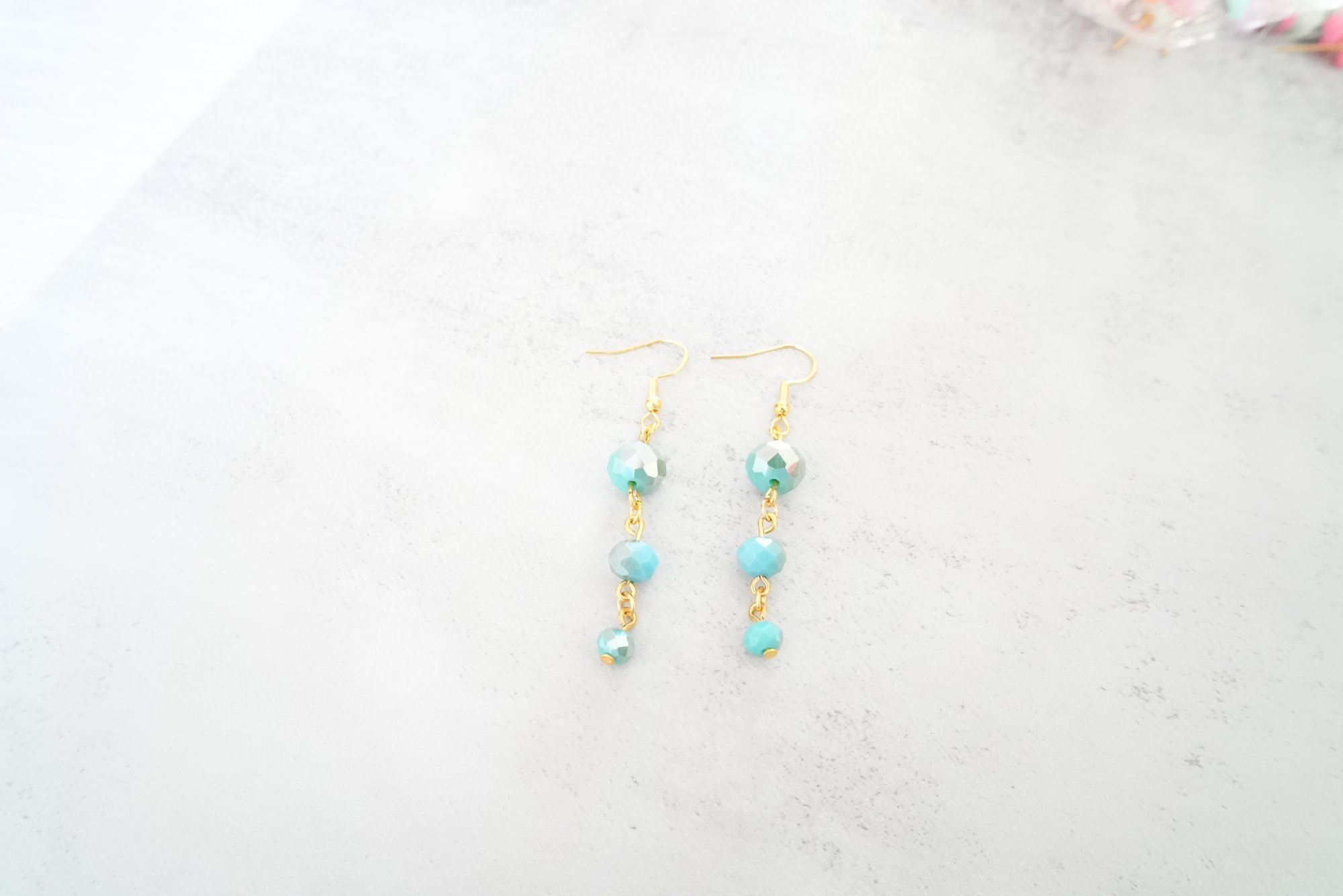 Made with gold stainless steel hardware and turquoise acrylic beads